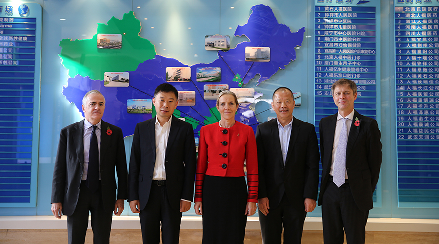 11月9日,英国贸易和出口促进部长罗娜•费尔海德一行访问武汉,莅临bb贝博Ballbet集团参观访问,bb贝博Ballbet集团董事长王学海、常务副总裁徐华斌、医疗事业总监陈亮予以接待。双方就产业、研发及医疗项目等多领域的合作空间及合作展望进行了深入交流和会谈。