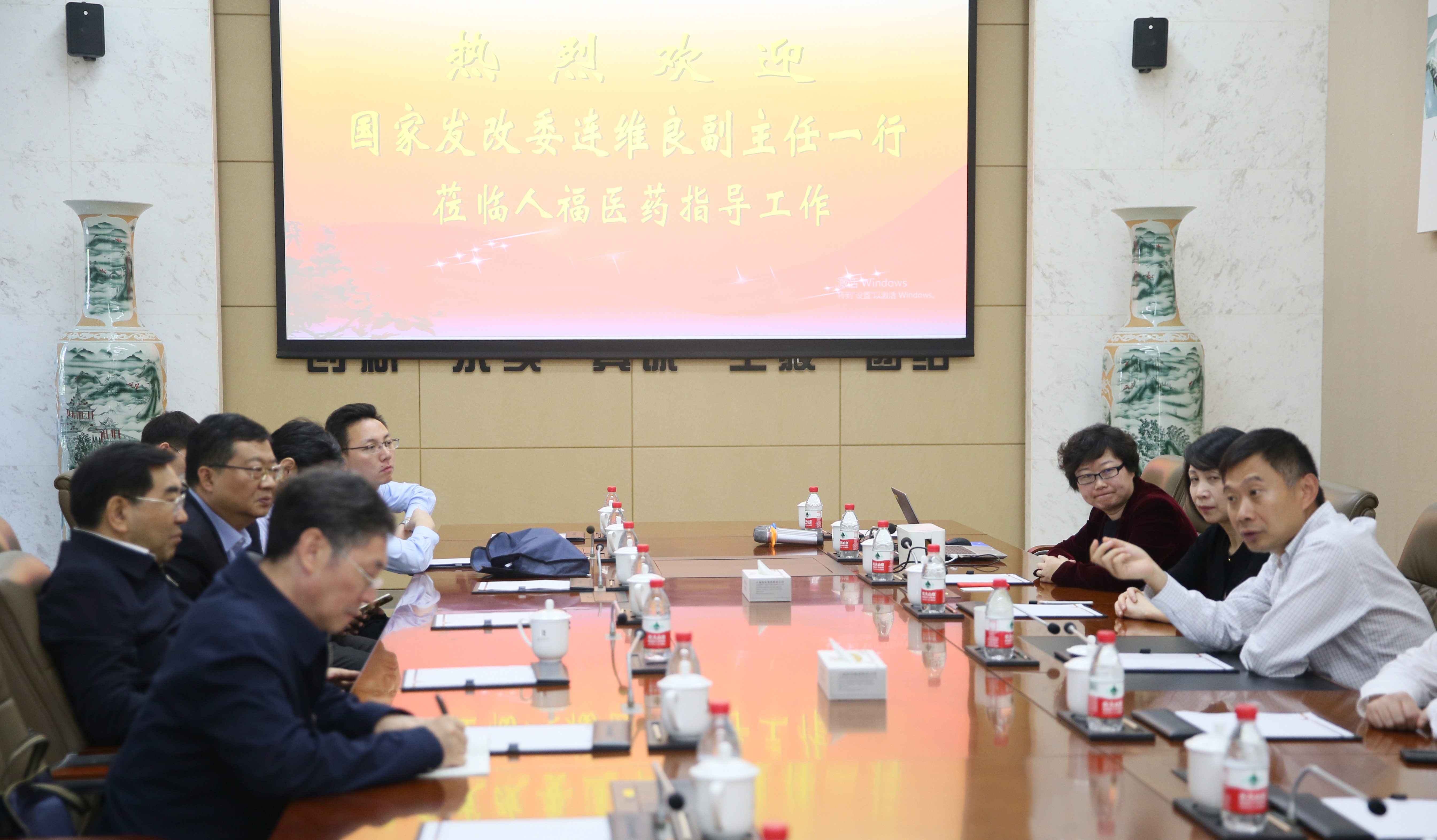 4月24日,国家发改委副主任连维良一行莅临bb贝博Ballbet集团调研,bb贝博Ballbet集团董事长王学海,医药研究院院长沈洁予以接待。