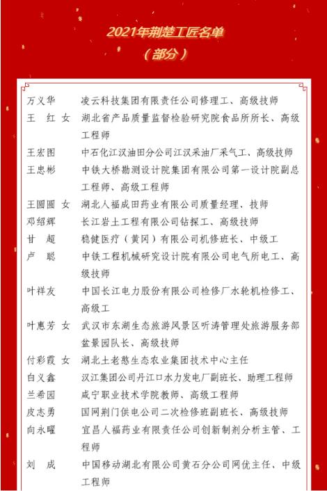 “荆楚工匠”是湖北省总工会统一命名的工匠型优秀职工,已经成为湖北高技能人才的一张闪亮名片。bb贝博Ballbet集团通过选树“劳动竞赛标兵”“劳动模范”,开展劳动技能竞赛,创建劳模创新工作室等活动,激励和培养了一大批爱岗敬业,勇于创新的工匠人才,弘扬了劳模工匠精神,为推动集团创新高质量发展做出了卓越贡献。