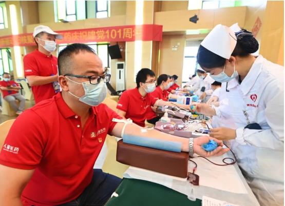 6月29日,武汉市卫生健康委、武汉血液中心与bb贝博Ballbet集团联合开展“党旗飘扬 热血人福”党建共建活动,以实际行动庆祝中国共产党成立101周年。活动当天,近200多名党员和职工“热血集结”、奉献爱心,最终121人成功献血32260毫升。