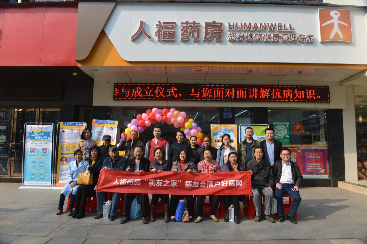 据人福药房介绍,为更好的服务于肺癌患者,搭建肺癌患友分享健康咨询、病后生活、治疗经验、治疗方法和心路历程的交流平台,人福药房发起湖北地区肺癌病友会,整合患者信息,建立病友圈,鼓励结识患友,相互交流、相互鼓励、相互支持,共享生命的美好。由于圈内患友多为服用浙江贝达药业生产的肺癌靶向药物“凯美纳”的患者,所以病友们提议将病友会取名为“凯友之家”,既避免了沉重的“肺癌”两个字,又有凯旋的意思,目前病友圈活跃度非常高,多为分享治疗经验和交流服药感受,大家互帮互助,互通有无。