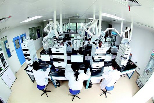图为:bb贝博Ballbet院士专家工作站技术人员正在开展新药研发。(受访企业提供)